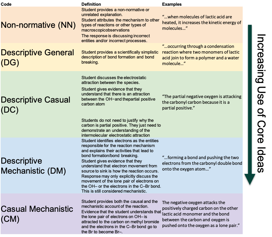 - Describe the ability of students to explain mechanisms through core chemical ideas