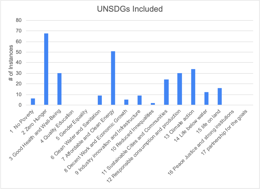 - Quantify the frequency students articulate repercussions or conflict between U.N Sustainable Development Goals (SDGs) and the proposed solutions.